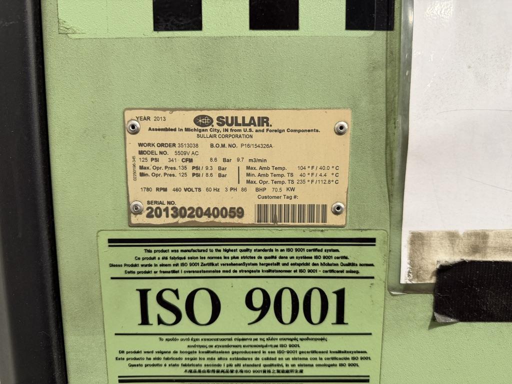 Sullair Model 5500 (5509V AC) Rotary Screw Compressor #201302040059. New 2013, 55700 hours